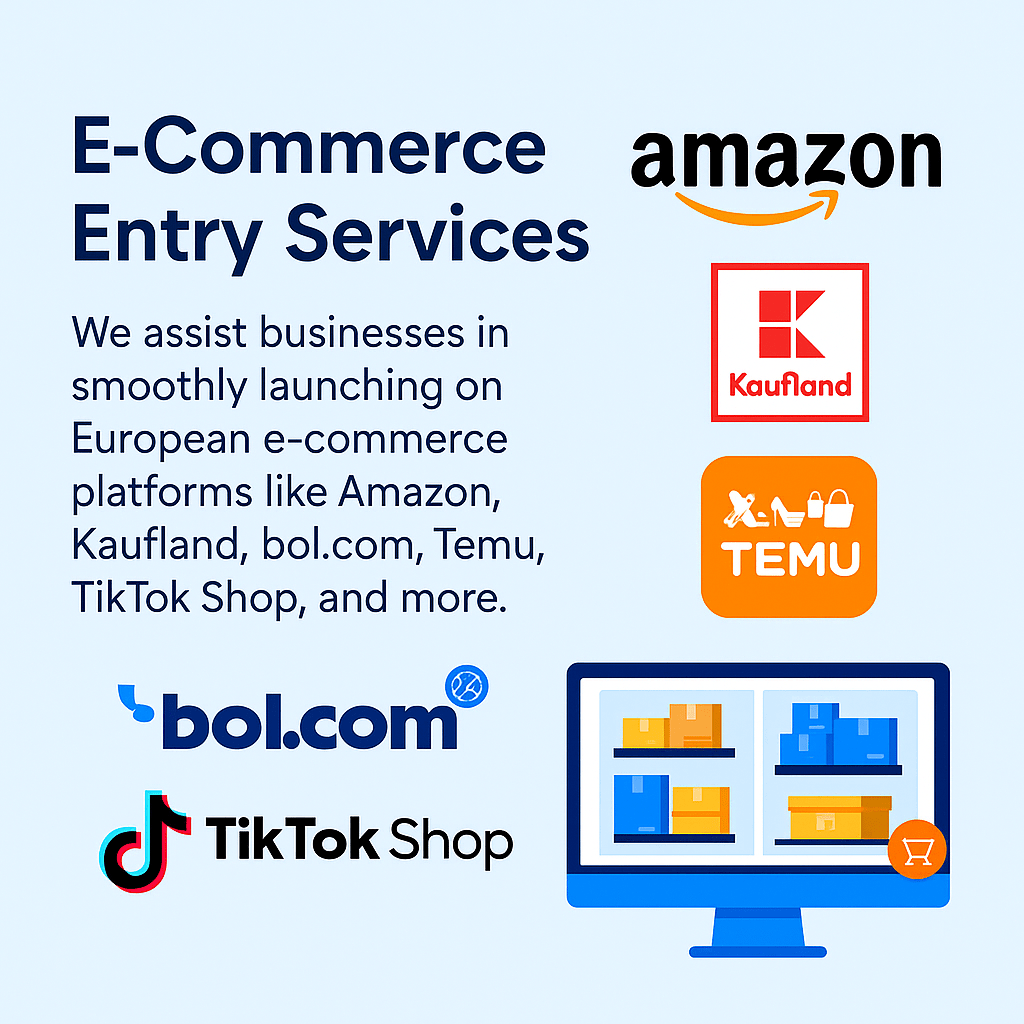 We assist businesses in smoothly launching on European e-commerce platforms like Amazon, Kaufland, bol.com, Temu, TikTok Shop, and more.